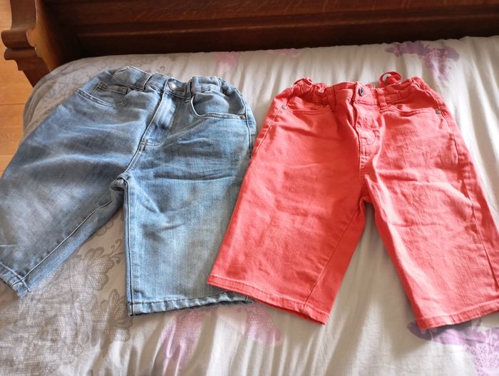 Lot de 2 shorts bermudas jean 12-13 ans 1 couleur bleu jean 1 rouge Marque denim co Élastique réglable intérieur de la taille Les 2 taille 12-13 ans Très bon état