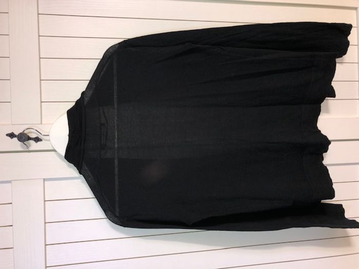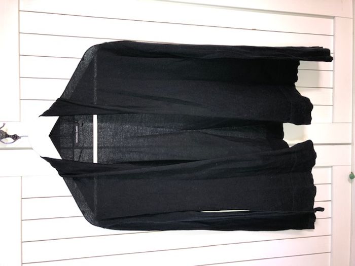 Gilet fin de couleur bleu marine très foncé (quasiment noir), porté ouvert (pas de bouton) Longueur (hors col) 57 cm Carrure 45 cm Très bon état #anso92000_femme_36