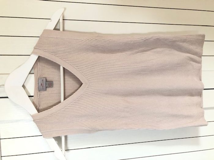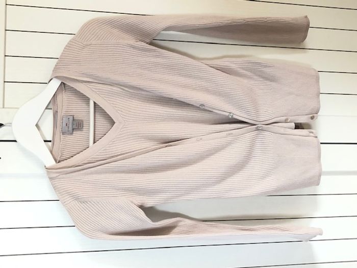 Twin-set de couleur beige clair, composé - d'un cardigan Taille 2 longueur 55 cm, carrure 33 cm - d'un débardeur col V Taille 1 longueur 54 cm, carrure 24 cm 70% viscose, 30% coton Très bon état #anso92000_femme_36 #anso92000_femme_38_40