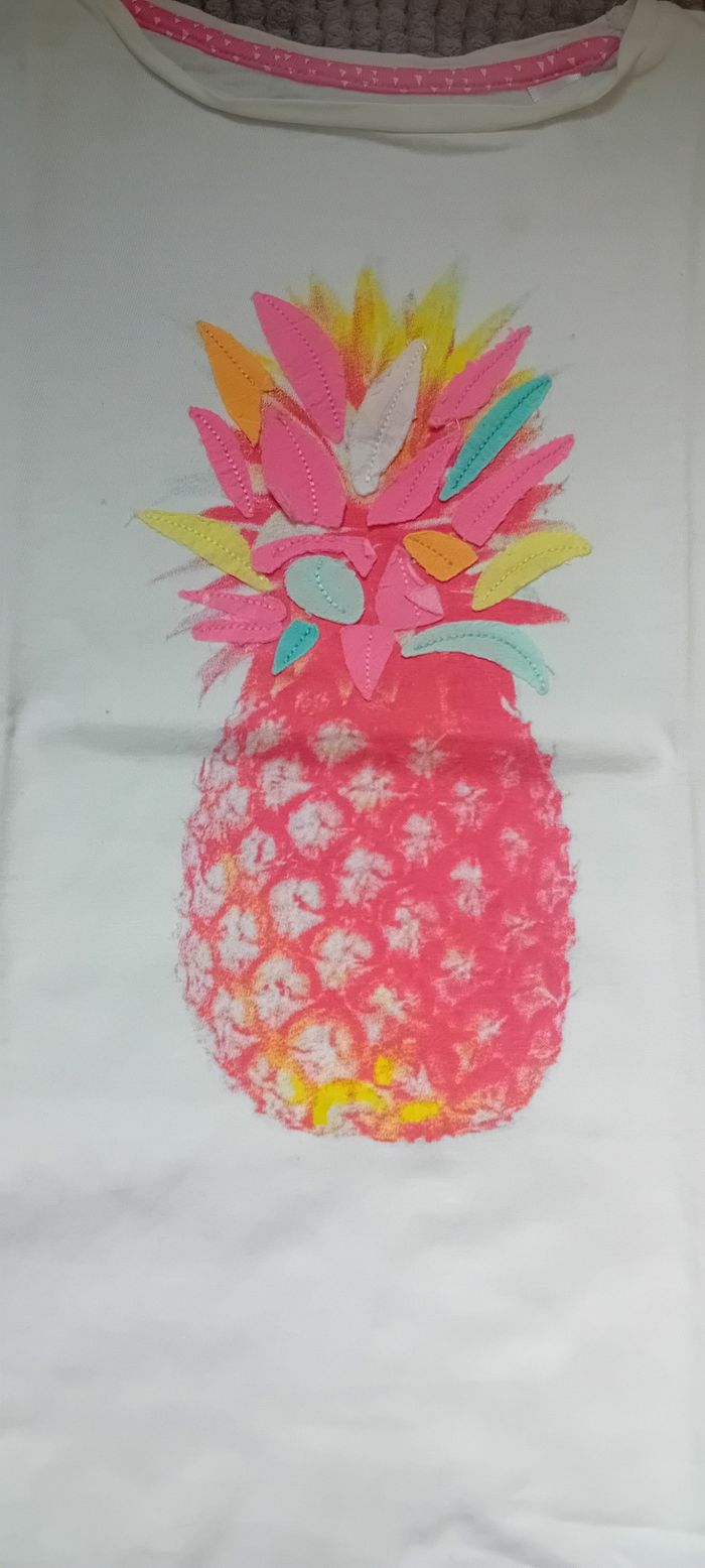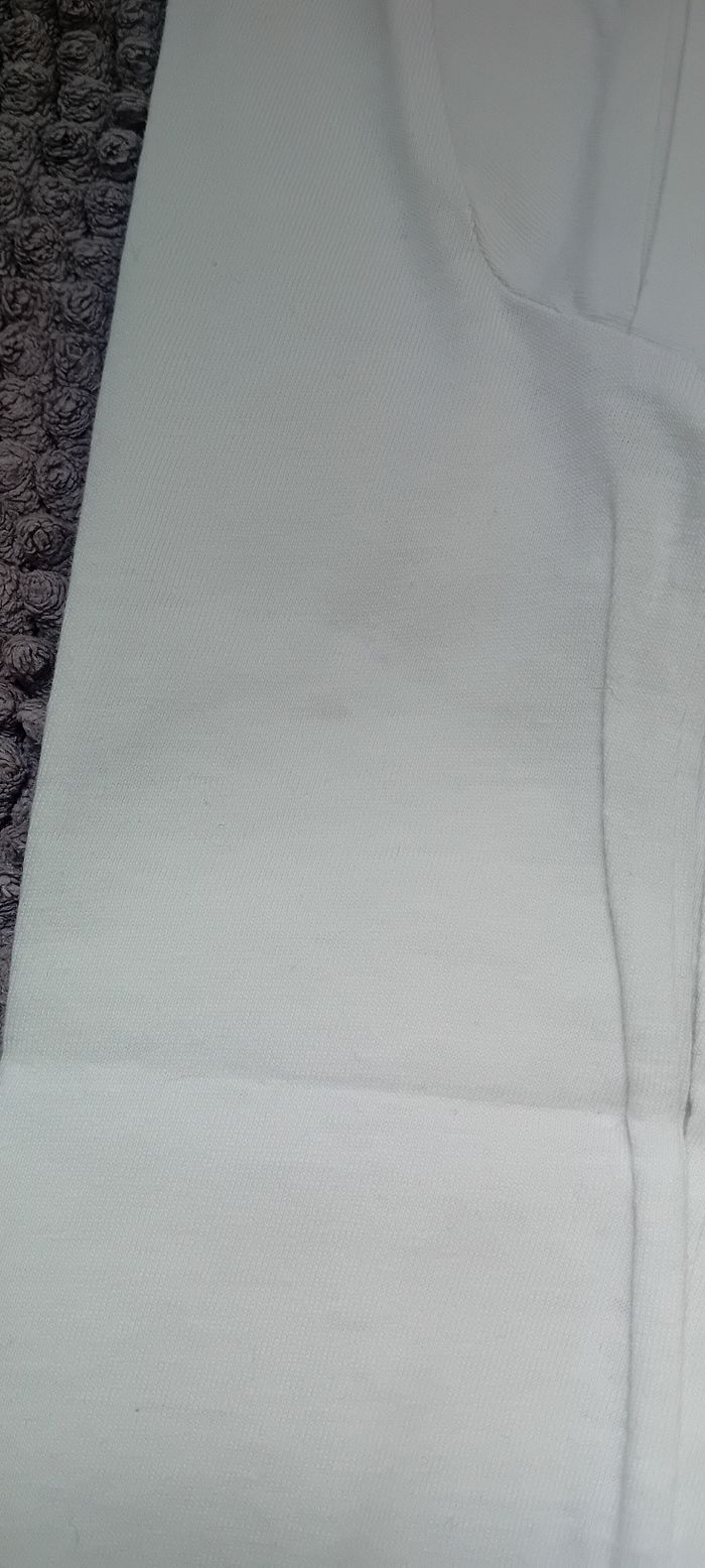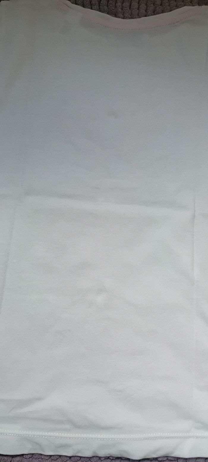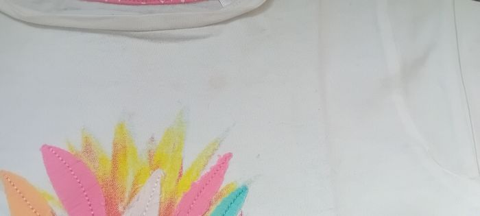 Une tâche sur le haut du t-shirt, voir photo N°3. Et sur un côté voir dernière photo.