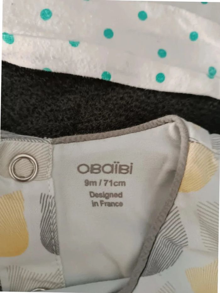 2 bodies manches longues avec tee shirt integré 9 mois Très bon état Petit béguin et obaibi