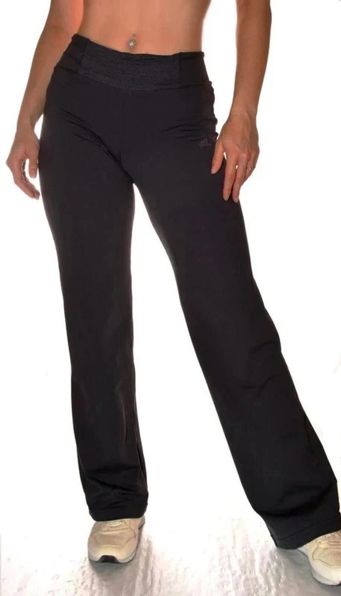 90% polyester 10% élasthanne taille 36 (élastiqué) hanche 37 cm cuisse 25,5 cm Longueur 98 cm #pantalondroitnoir36 #adidasfemme36 #pantalondroit36 #adidas36women