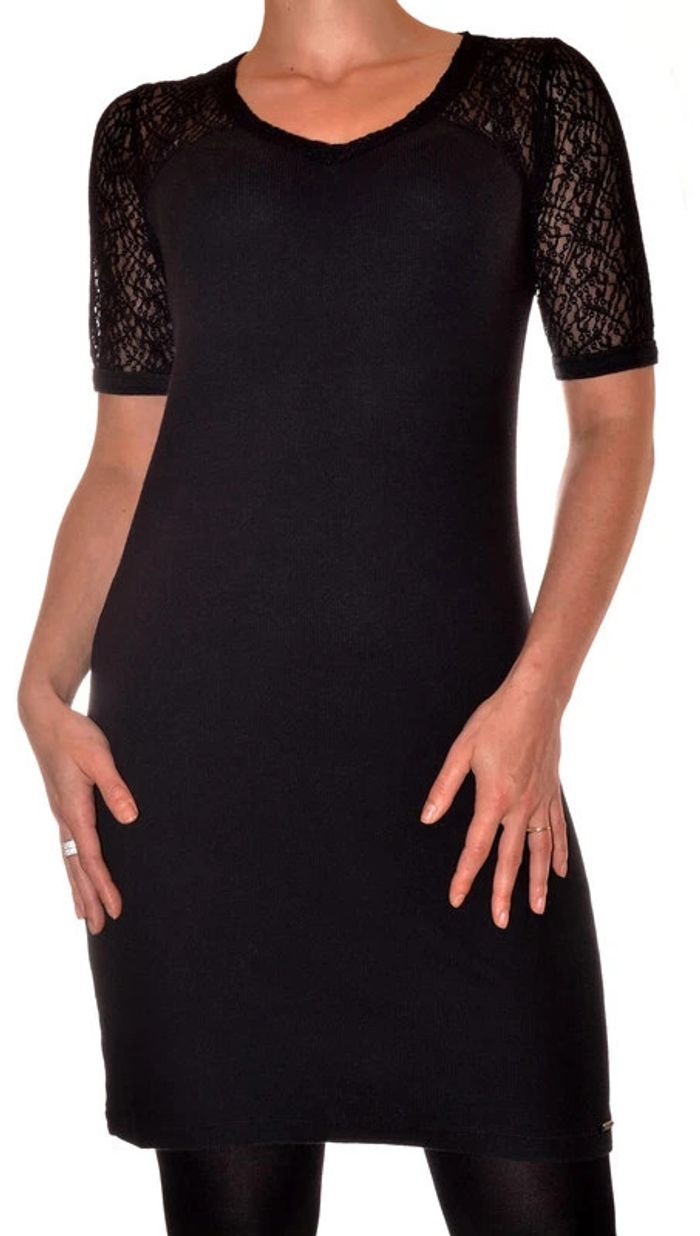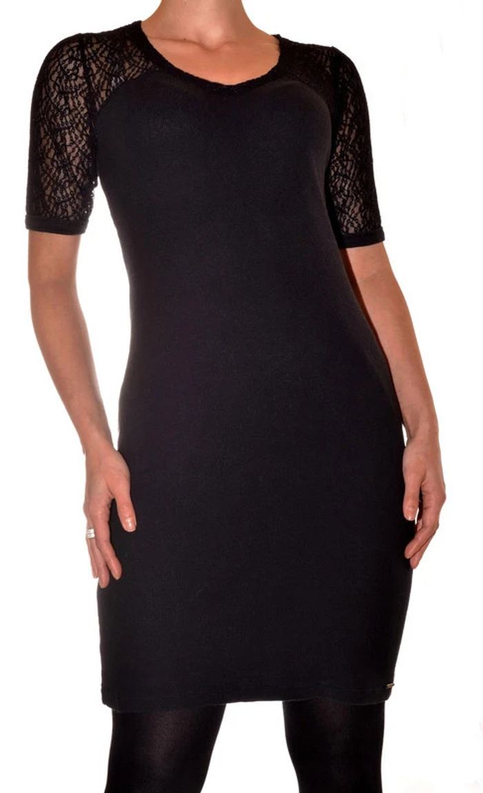 🌸Robe élégante noire unie à manches courtes avec dentelle taille M 🌸bon état: peluché sur les manches 🌸Longueur: 90 cm 97% coton 3% élasthanne 🌸non doublée #robe38femme #robenoiredentelle38 #ikks #robemisaison38 #robemanchescourtes #lacedress38 #blackdress38 #eleganterobenoire