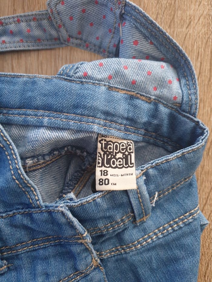Robe en jean tape à l oeil, taille réglable, bretelles à pression taille 18 mois 80 cm
