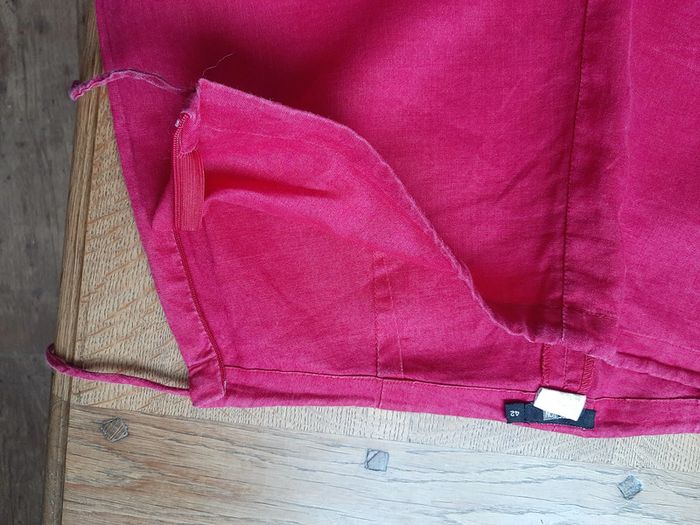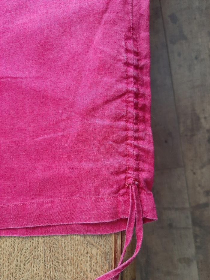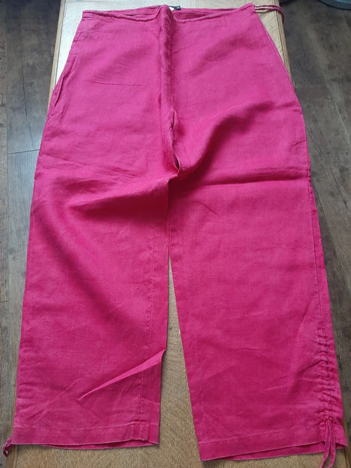 pantacourt 100% lin, zip coté + cordon, cordon au bas pour pouvoir remonter, couleur fuschia, taille 42, marque Autre Ton