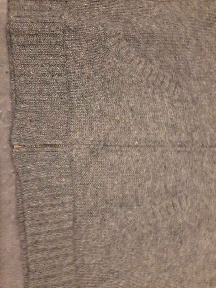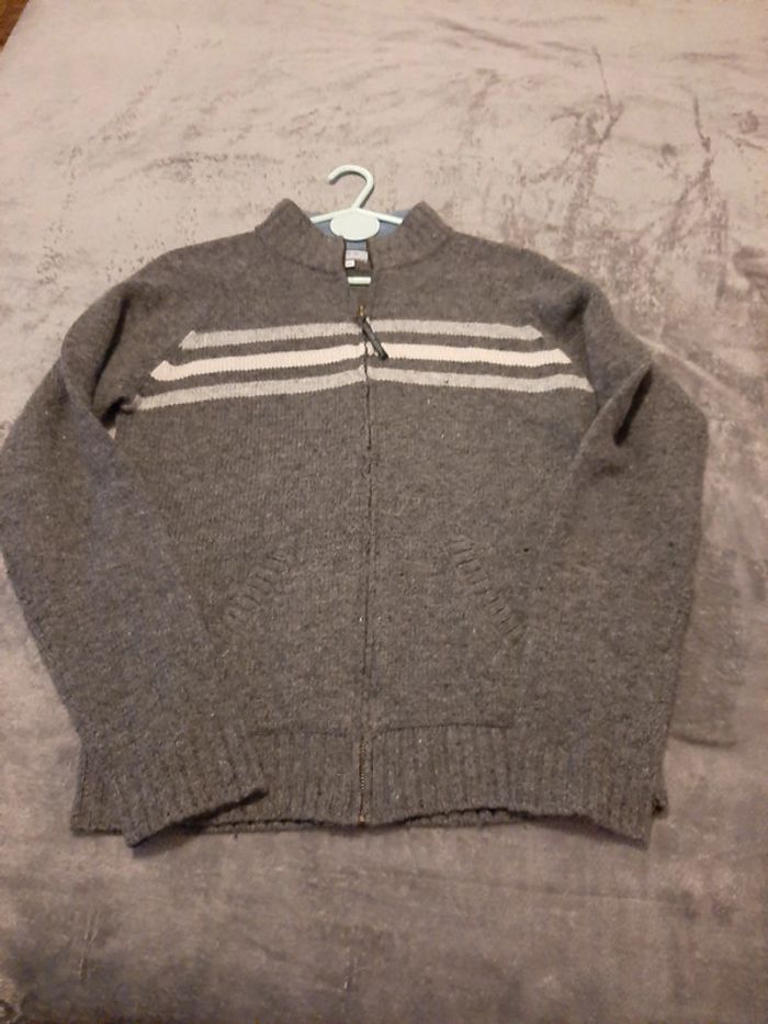 gilet zippé gris, 2 poches bassin, 85% acrylique 15% laine, col doublé polaire, taille 14 ans, marque CFK