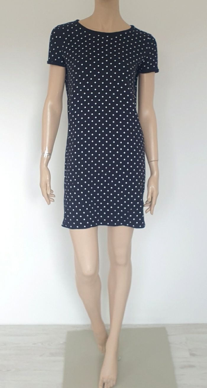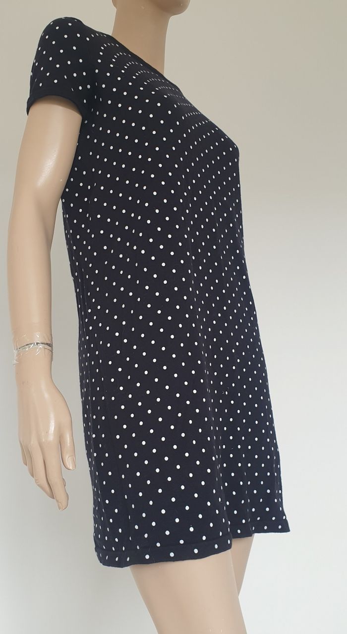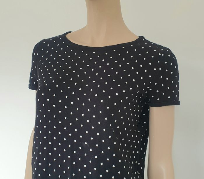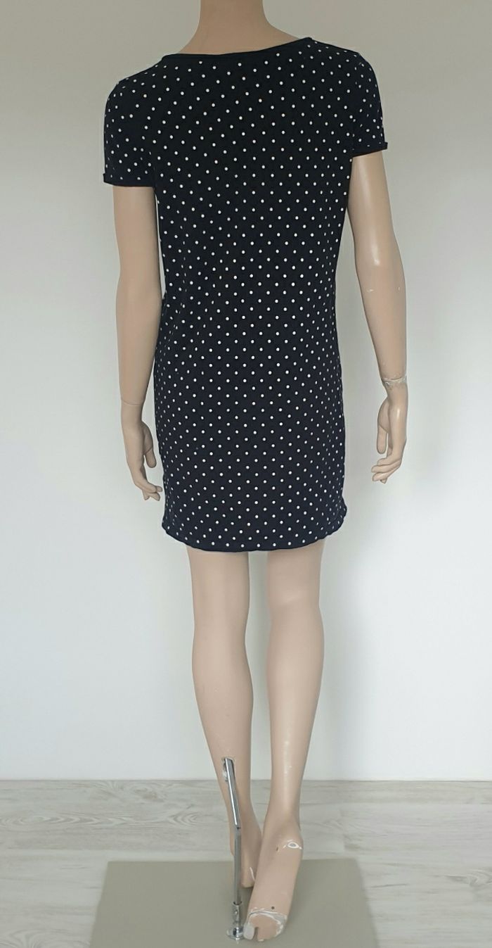Une robe noire à pois blancs de 83cm de long Largeur épaules 36 Aisselles à aisselles 47cm Kiabi Taille S ( 34/36 )