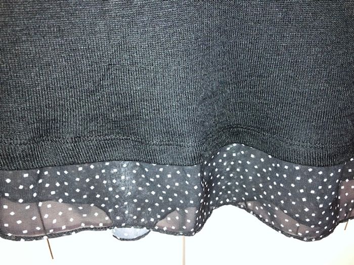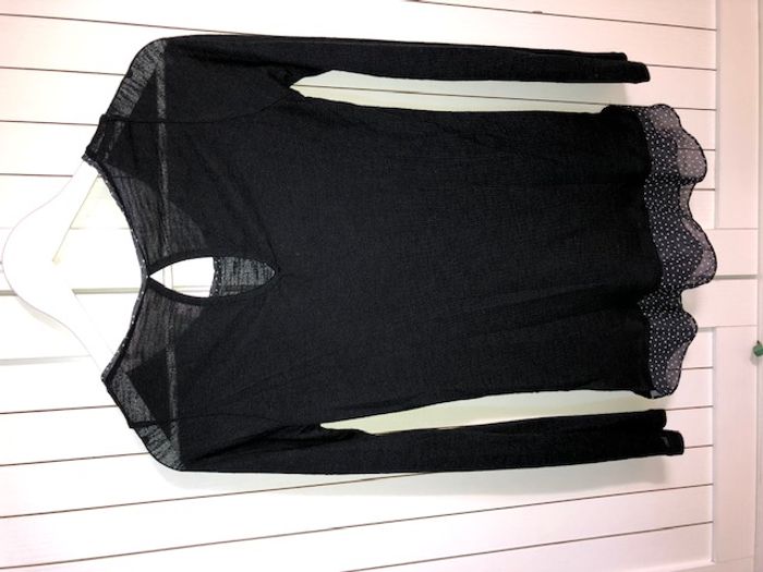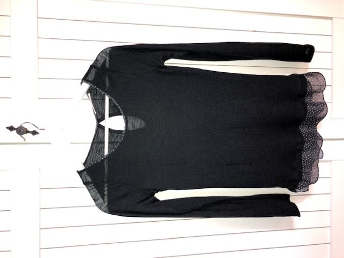 Pull fin de couleur noir Effet superposition de chemise (noir avec petits carrés blancs) Carrure 30 cm Longueur 67 cm Très bon état #anso92000_femme_36