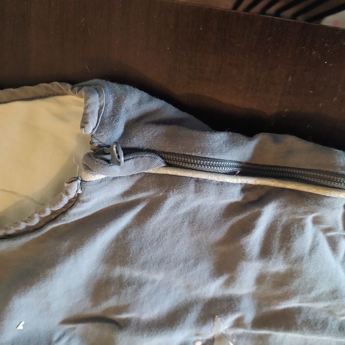 Turbulette légère 6 mois , toute petite décoloration au niveau du bouton voir photo sinon pas de défaut.