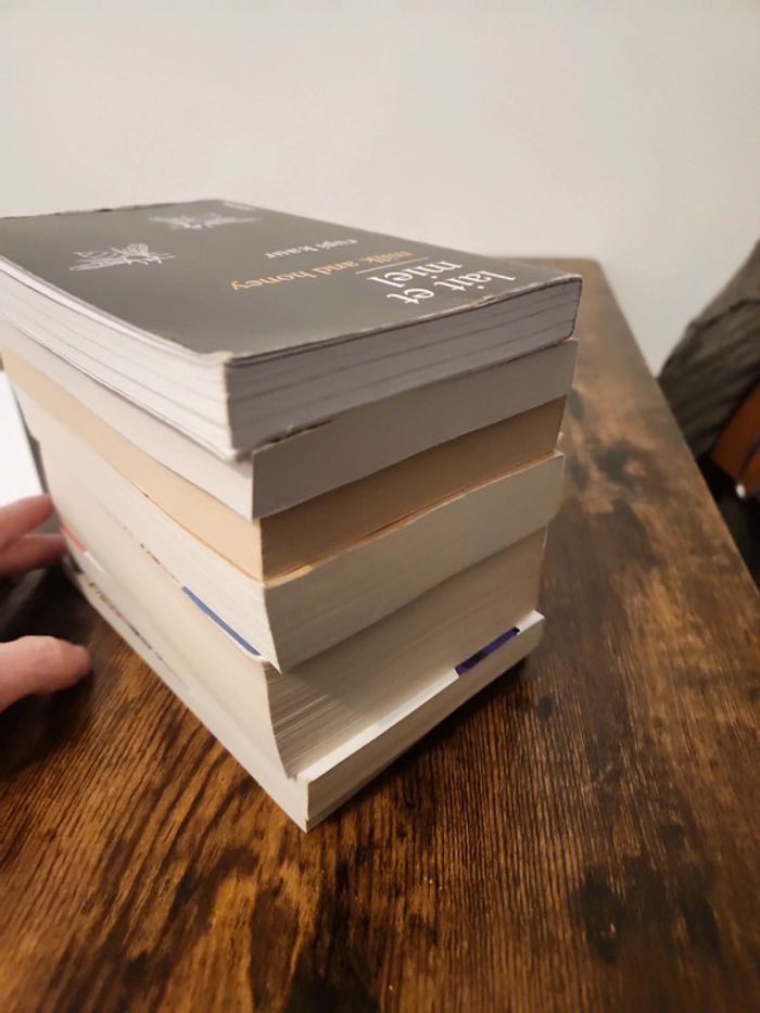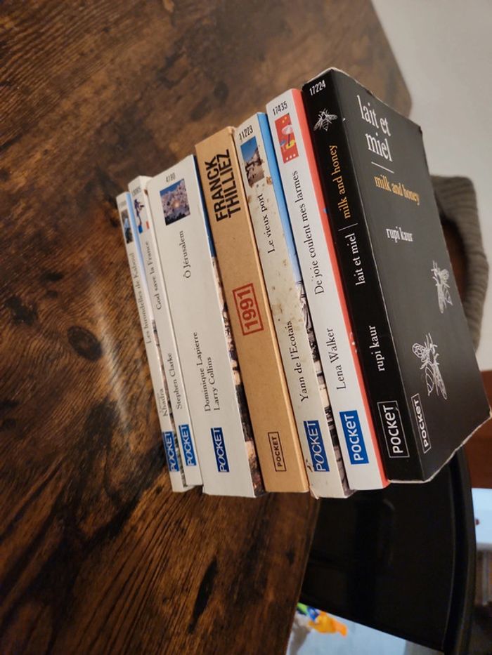 2.50 le livre : demandez 🙂 Les hirondelles de Kaboul - Yasmina Khadra God save la France - Stephen Clarke Ô Jérusalem- Dominique Lapierre 1991 - Franck Thilliez Le vieux port - Yann de l'Ecotais De joie coulent mes larmes- Lena Walker Lait et miel - rupi kaur