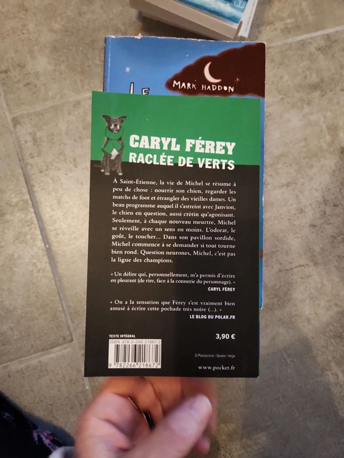 3.50e le livre sauf raclée de vert 1.50 Mamma Roma - Luca Di Fulvio L'ange du chaos - Michel Robert Green river - Tim Willicks Le bizarre incident du chien pendant la nuit- Mark Haddon Raclée de vert - Caryl Férey 1e50