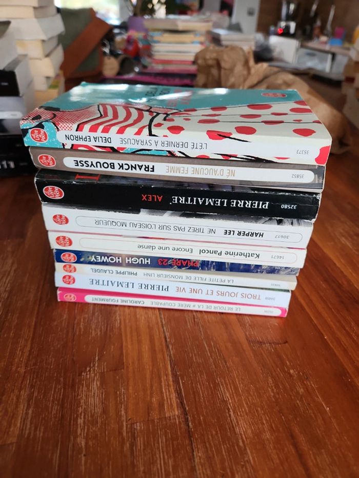 1e le livre : si détail demandez 🙂 Le retour de la mère coupable - Caroline Fourment Trois jours et une vie - Pierre Lemaitre La petite fille de monsieur Linh - Phillipe Claudel Phare 23 - Hugh Howey Encore une danse - Katherine Pancol Ne tirez pas sur l'oiseau moqueur - Harper Lee Alex - Pierre Lemaitre Né d'aucune femme - Franck Bouysse L'été dernier à Syracuse - Delia Ephron
