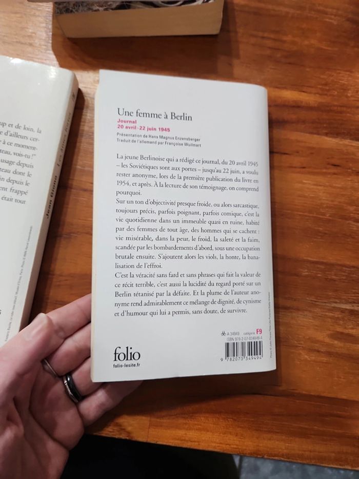 Une femme a Berlin - journal 1945 3e bon etat La ronde et autres faits divers - JMG Le Clézio 3.50e très bon état Les âmes fortes - Jean Giono 2.50 bon etat