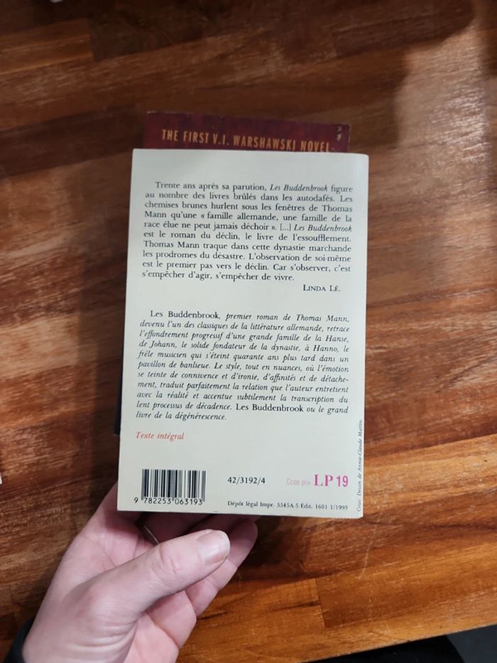 2e le livre : Sara Paretsky - Indemnity only Thomas Mann - Les buddenbrook Dennis Lehane - ténèbres prenez moi la main Bernard Minier - Le cercle Douglas Kennedy - La femme du Ve
