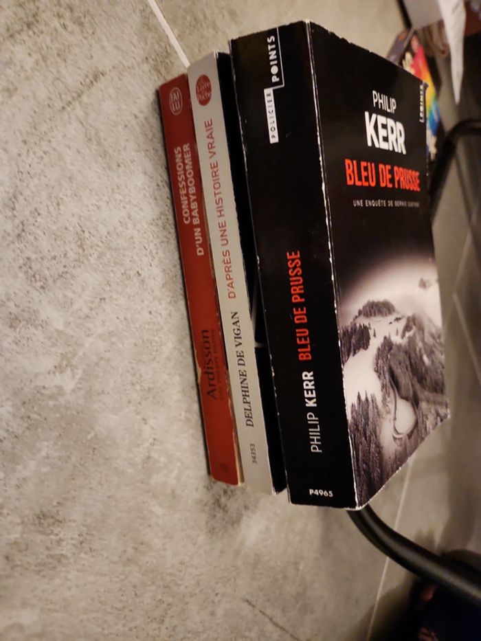 Bleu de prusse / point / Phili Kerr- 1.50 Delphine de Vigan d'après une histoire vraie / livre de poche / 1.50 Confessions d'un Babyboomer avec Kieffer-Ardisson 1 50