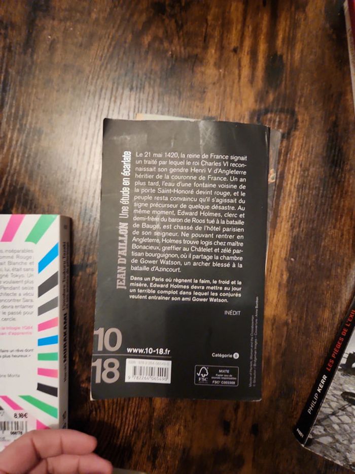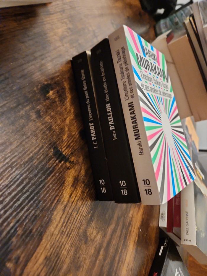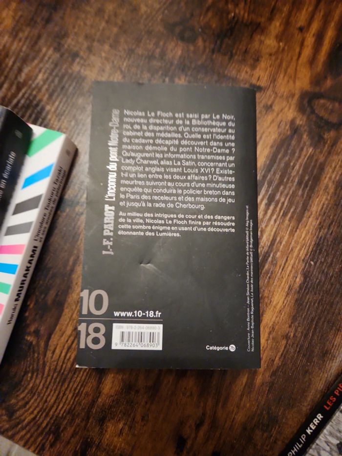 Éditions 10/18 L'incolore Tsukuru Tazaki et ses années de pèlerinage 4e tres bon état Jean d'Aillon : une etude en ecarlate 2e bon etat Jean François Parot : L'inconnu du pont Notre-Dame 2e bon état