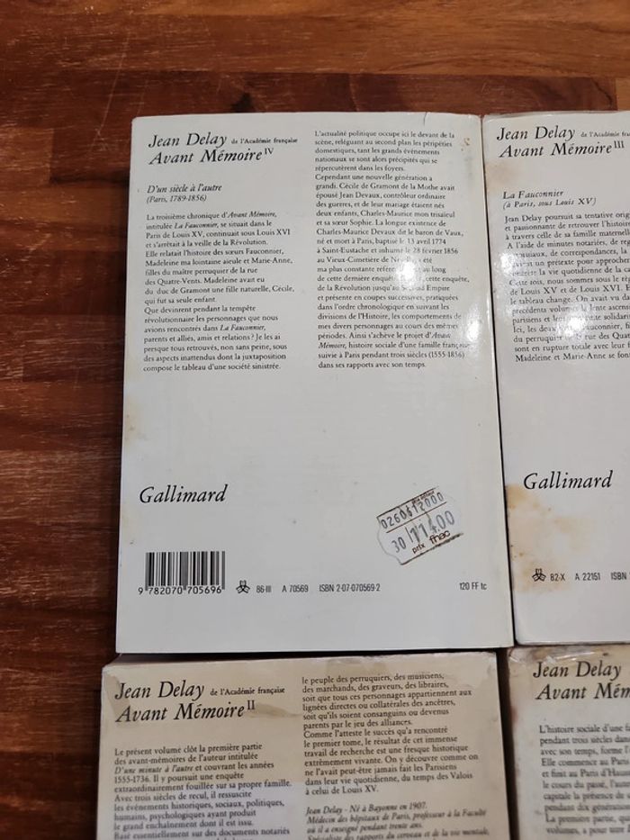 Lot de 4 livre : Avant mémoire