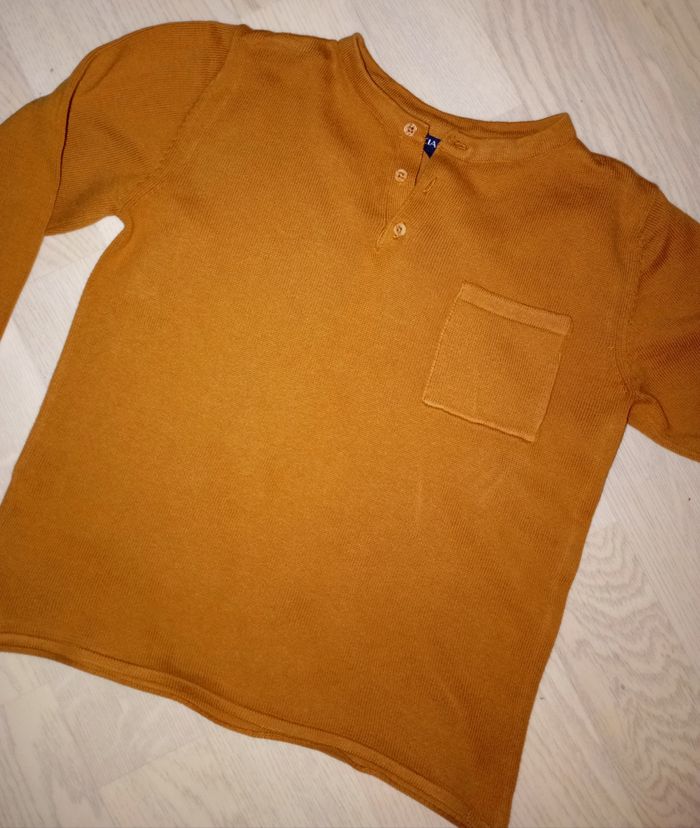 Pull fin moutarde col tunisien Kiabi T. 6 ans - photo numéro 1