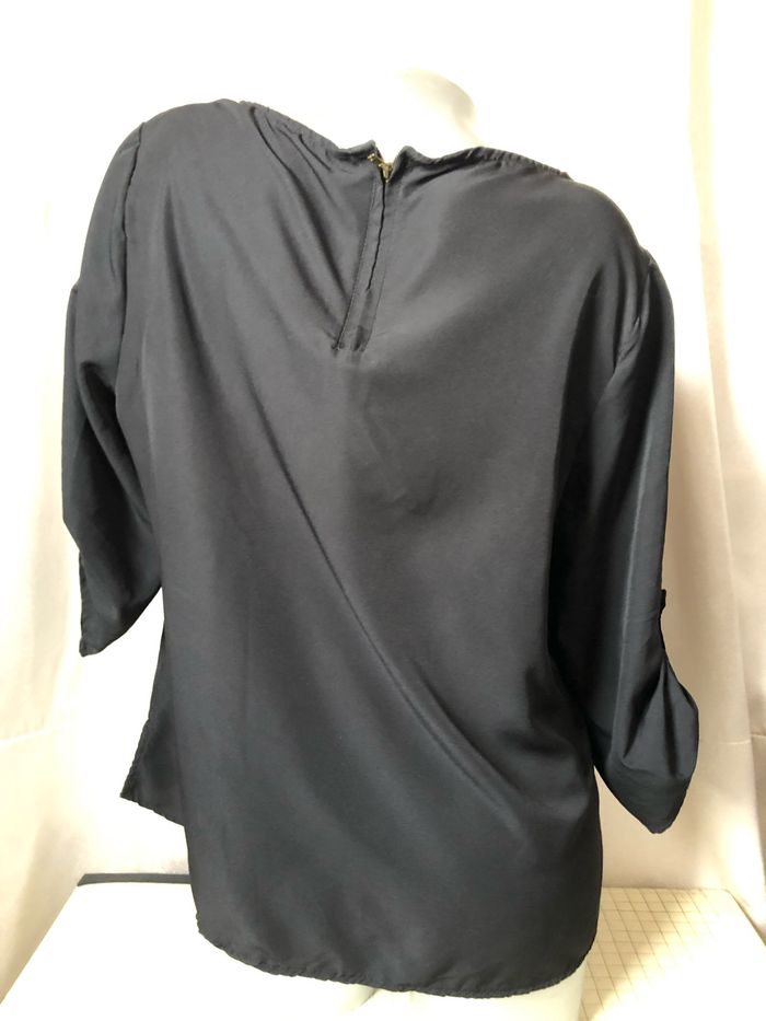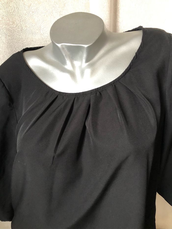 Blouse Tunique noire 100% polyester Large encolure avec plis devant et fermeture en haut du dos Manches 3/4 avec patte Fendue sur chaque côté Taille 38 Carrure 42 cm Aisselle à aisselle 59,5 cm Longueur 64 cm zeeman