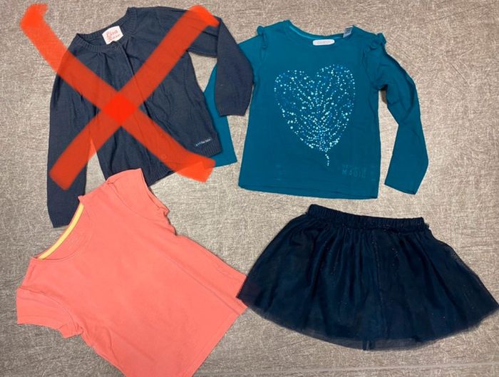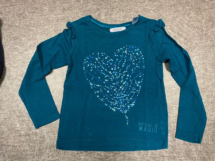 le lot 4€ - 1 t shirt bleu/vert manches longues okaidi tissus doux et souple avec des strass. TBE - 1 T shirt saumon orchestra TBE - 1 jupe en tulle à paillettes comme neuve Toutes mes annonces sont classées par catégories. Pour voir mes autres annonces en trois ans tapez #3anspo45