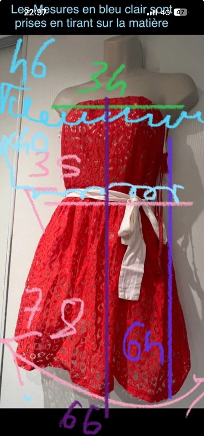 Je vends une petite robe bustier, Elle est comme neuve elle pourra servir pour diverses occasions. Elle est très élégante et peut servir aussi à la ville. Comme pour une belle sortie, plage.. Elle possède une paire de bretelles , si cela était nécessaire pour la Porter. elles sont sur photo. Elle tient sans les bretelles avec une bande en genre de plastique translucide en très bon état de fonctionnement. En photo également. La robe est comme neuve. Les mesures sont données sur photo. Elle est en parfait état elle a peut-être servi une fois Taille S/36. La partie taille est élastique, voir les mesures sur photo La partie bustier et élastique, également, voir les mesures sur photo en tirant sur la matière et s’en tirer sur la matière. Il y a une petite ceinture avec la robe Il y a une fermeture à glissière sur le côté gauche. La robe est doublée deux fois sur la partie Jupe une fois sur la partie bustier. D’autres photos, renseignements sur Demande Robe bustier Naf Naf orange, dentelle taille S/36 Choup 220 oran29
