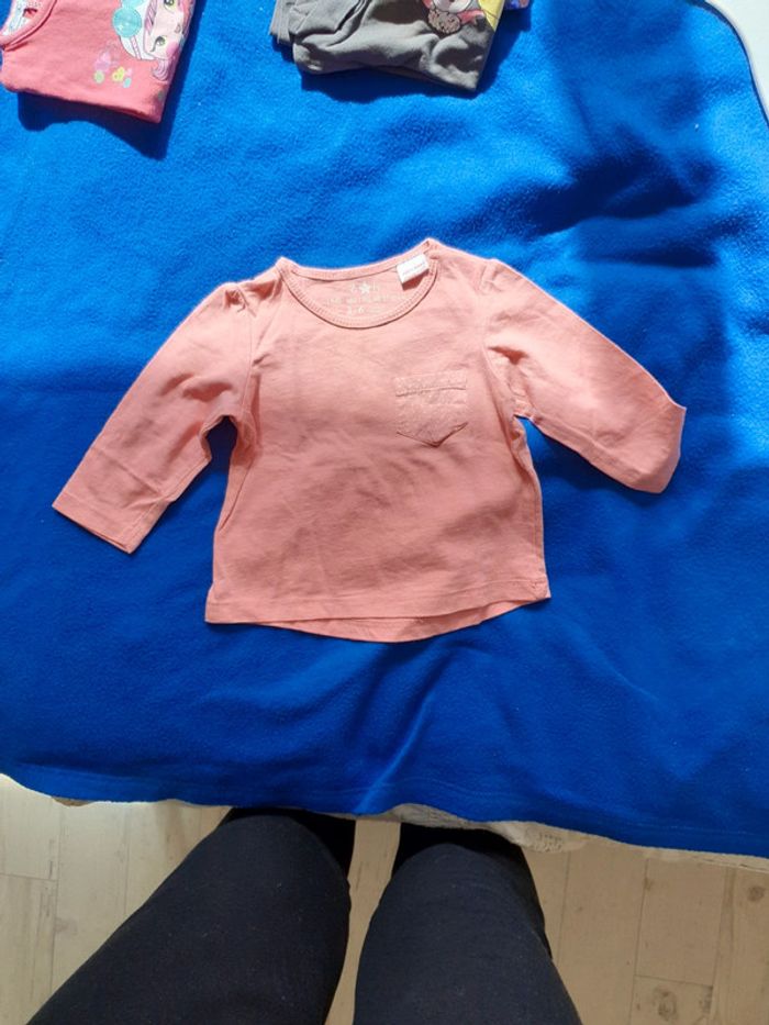 Tee-shirt rose 3/6mois fille manches longues - photo numéro 3