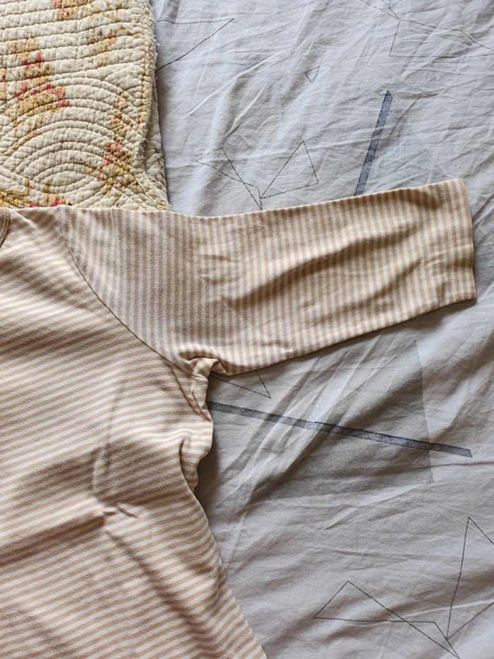 Raies horizontales beige Haut sous de bras bas 40 cm Col rond 100/100 coton