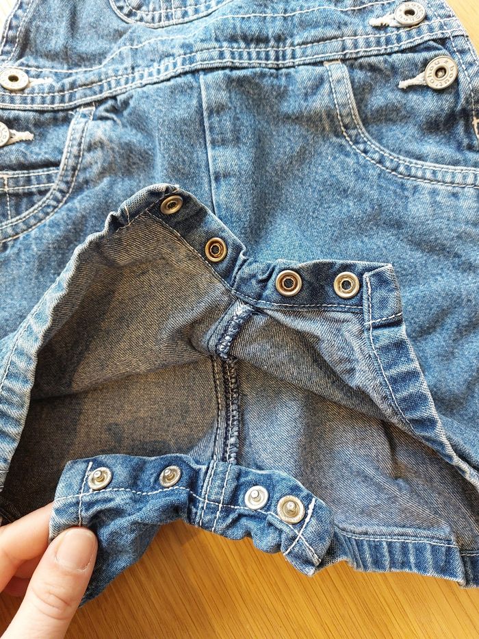 Salopette en jeans souple non doublée ouverture à l'entrejambe pour un change facile et rapide. Bretelles réglables. Marque bout'chou en 12m, une 2ème même marque et style disponible dans mon dressing