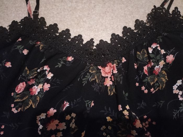 Très joli top a épaules dénudés Très chic Très fluide 100% rayonne Peut être serrer a la taille avec une ceinture Très sympas pour l'été Taille M/L Marque Orcelly Excellent état 6€