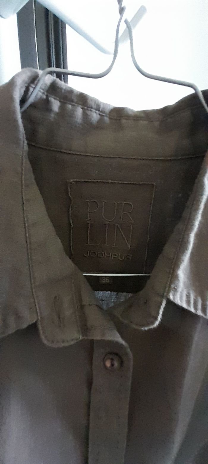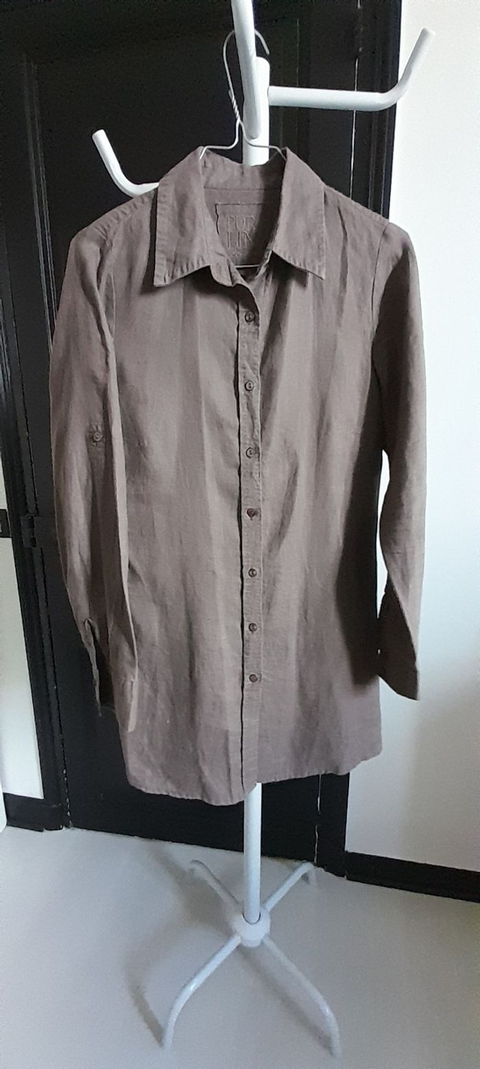 Robe/ tunique T 36 Marque PURLIN JOOHPUR Couleur chocolat Attache central boutons Manches longues ou courtes 100 % lin Très très bon état