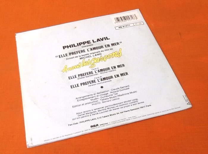 Vinyle 45 tours Philippe Lavil Elle préfère l' amour en mer (1985) RCA Victor PB 61571 Elle Préfère L'amour En Mer 3:00 Elle Préfère L'amour En Mer (Version Instrumentale) 3:15
