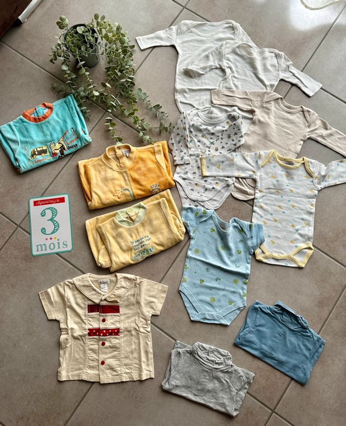 Lot vêtements bébé taille 3 mois différente marque 6 bodies 2 sous pull 3 pyjamas 1 tee shirt #bebemixtelatilma