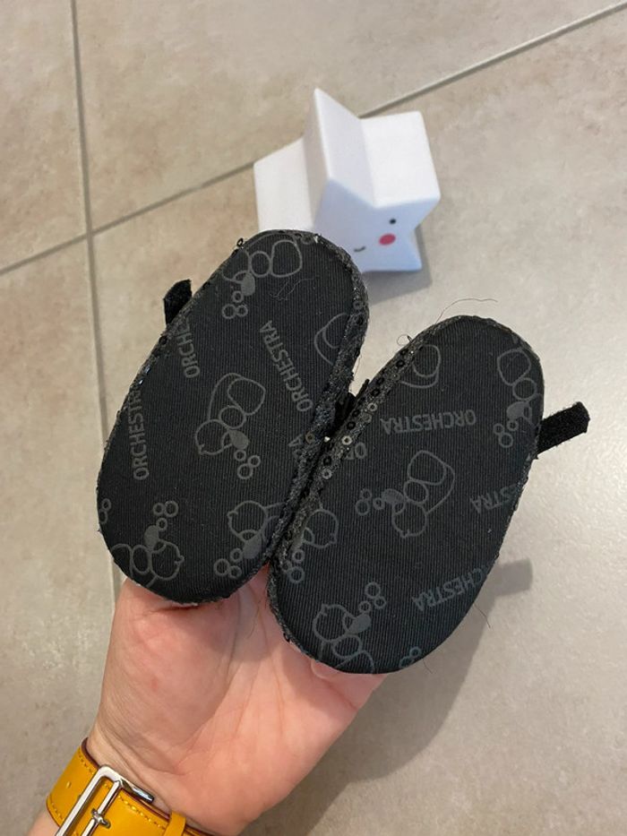 Chaussures ballerine noires à sequins Idéal pour tenues de fêtes Taille : 6/12 mois Marque : orchestra #chaussuresbebelatilma