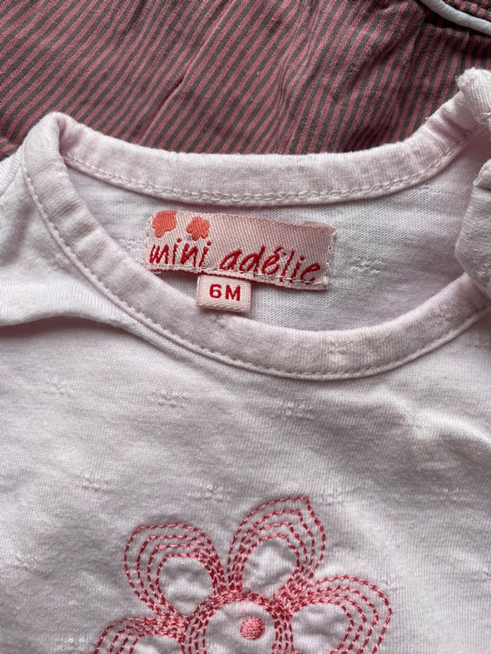 ensemble #taille6mois composé d’un #pantalon marque #tapealoeil et d’un #teeshirtmanchescourtes marque #miniadélie #toutpourbebelatilma #bebefille6moislatilma