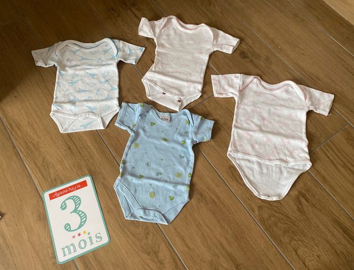 lot de 4 body taille 3 mois porté mais peuvent encore servir #bebefille3moislatilma #bodys3mois