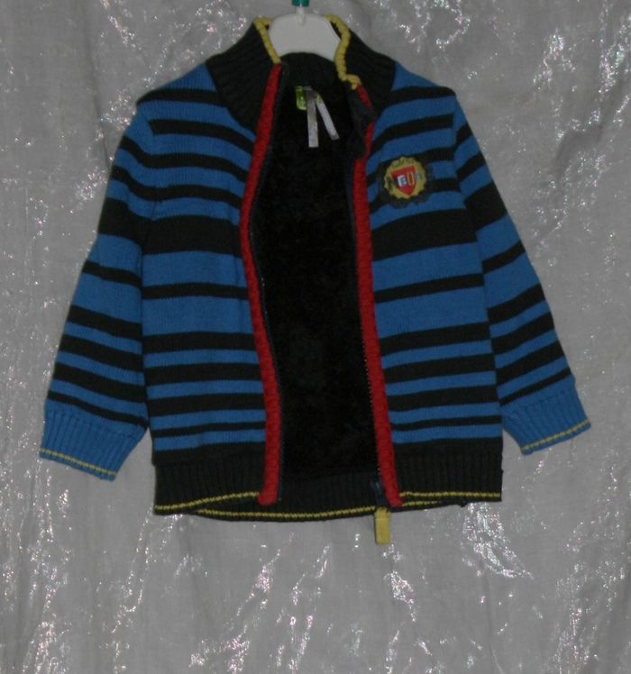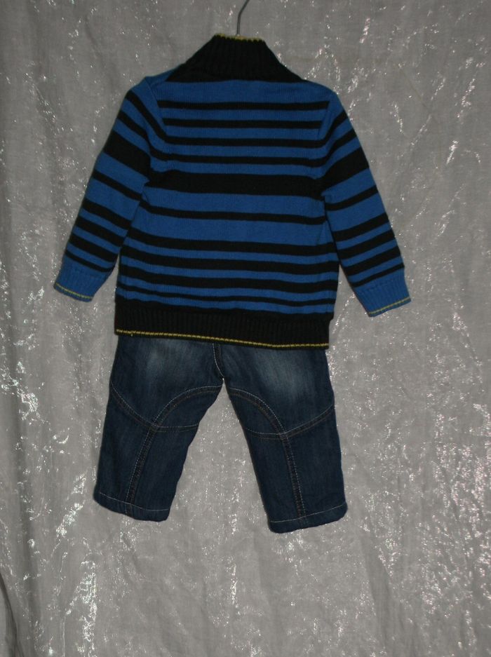 - Gros gilet épais zippé BABY BOY ORCHESTRA Epais, doublé polaire tout doux Col montant, écusson sur poitrine Couleur comme photo (bleu/noir) Extérieur 100% coton Doublure polaire 100% polyester Excellent état comme neuf - Pantalon jeans BABY BOY ORCHESTRA Epais, doublure molletonnée Taille élastique Extérieur 100% coton Doublure 100% polyester Taille 9 mois (71 cm)