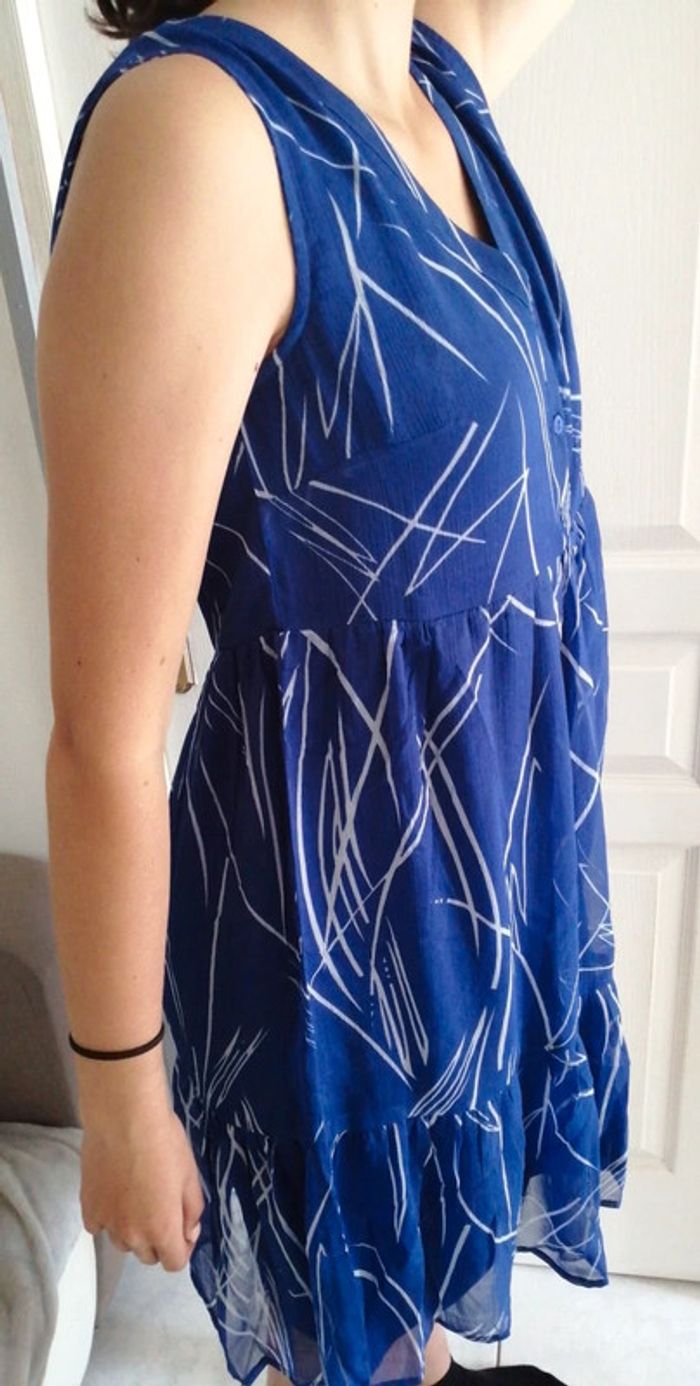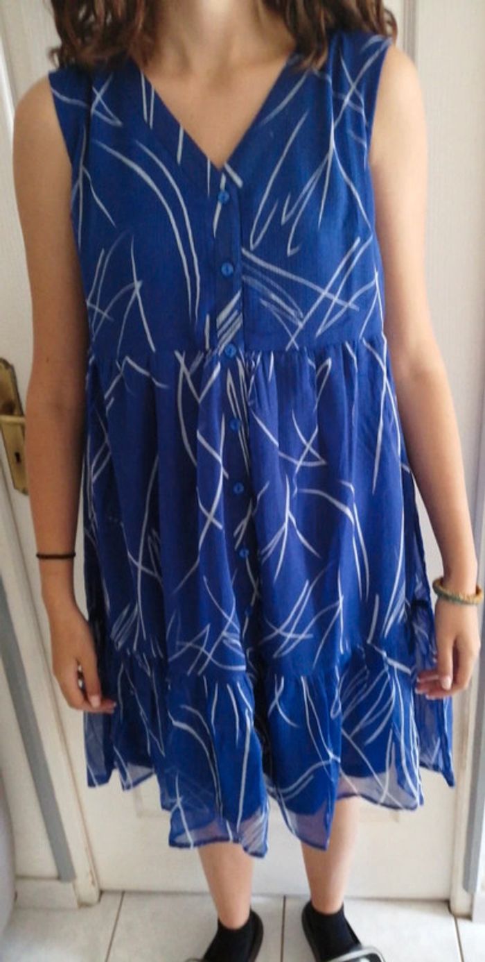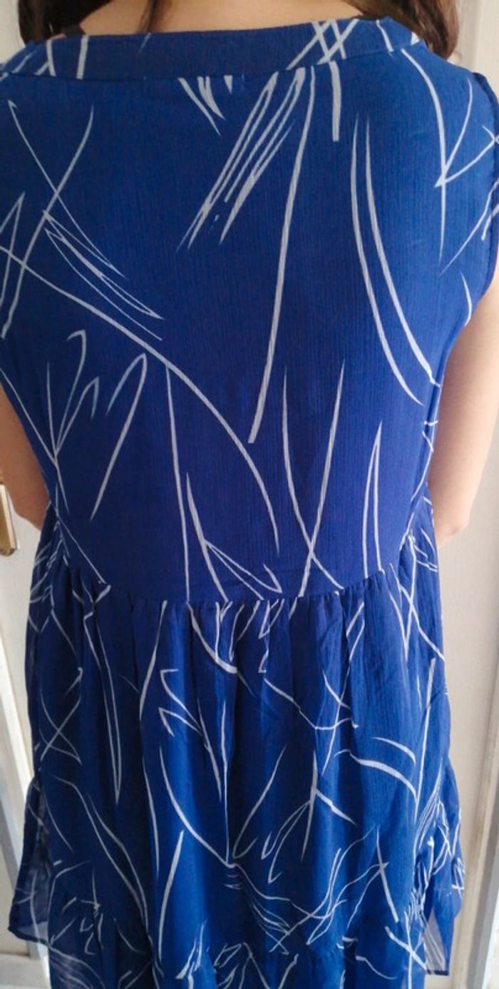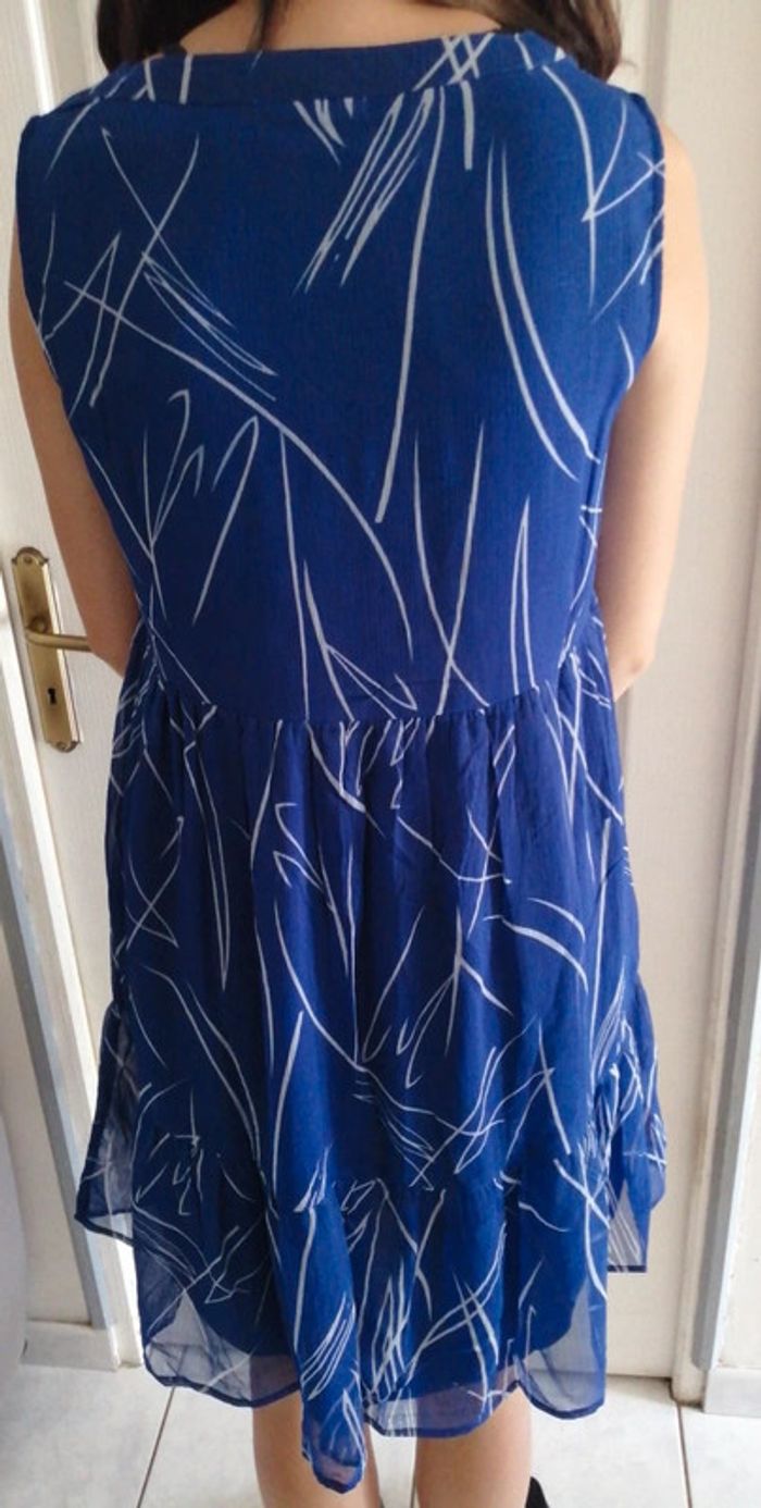 Très jolie robe volantée neuve (encore dans son emballage, juste portée pour la photo car ne convient pas à la personne à laquelle elle était destinée) Col V légèrement arrondi Entièrement boutonnée devant Pinces poitrine pour plus d'aisance Coupe évasée flatteuse sans manches Découpe sous poitrine avec 2 volants froncés dessous Voile léger (et doublé) agréable à porter Longueur : 98 cm environ. Voile imprimé 100% polyester Doublure en maille 100% polyester Achetée 30 € #articlesneufseilsel0 #robefemmeeilsel0 #hautfemmeT38eilsel0