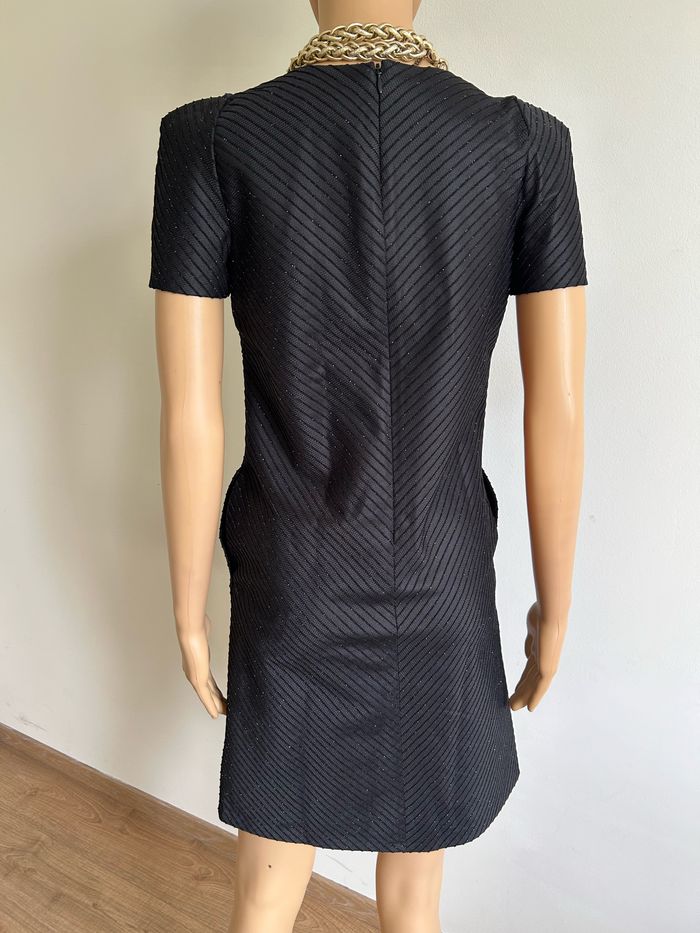 Magnifique robe noire pailletée à manches courtes, de marque Sinequanone. Fermeture dans le dos et deux poches sur le devant. Taille 36. Elle est neuve avec étiquette (valeur 119€). aisselle à aisselle 43 cms épaule à épaule 34 cms taille 42 cms longueur depuis épaule 90 cms 100% polyester
