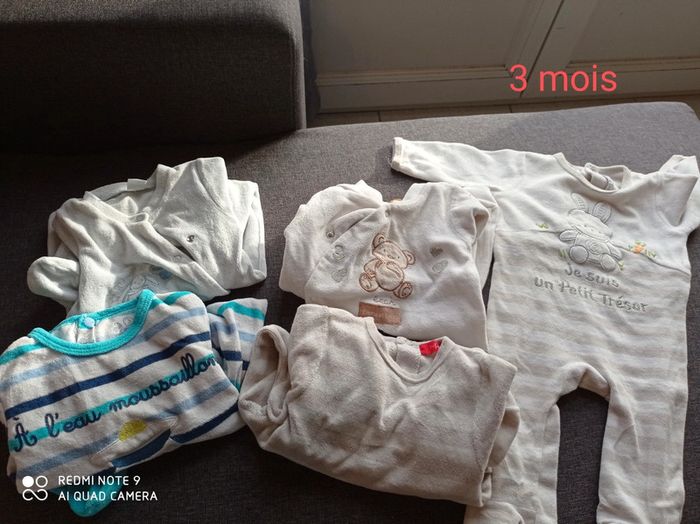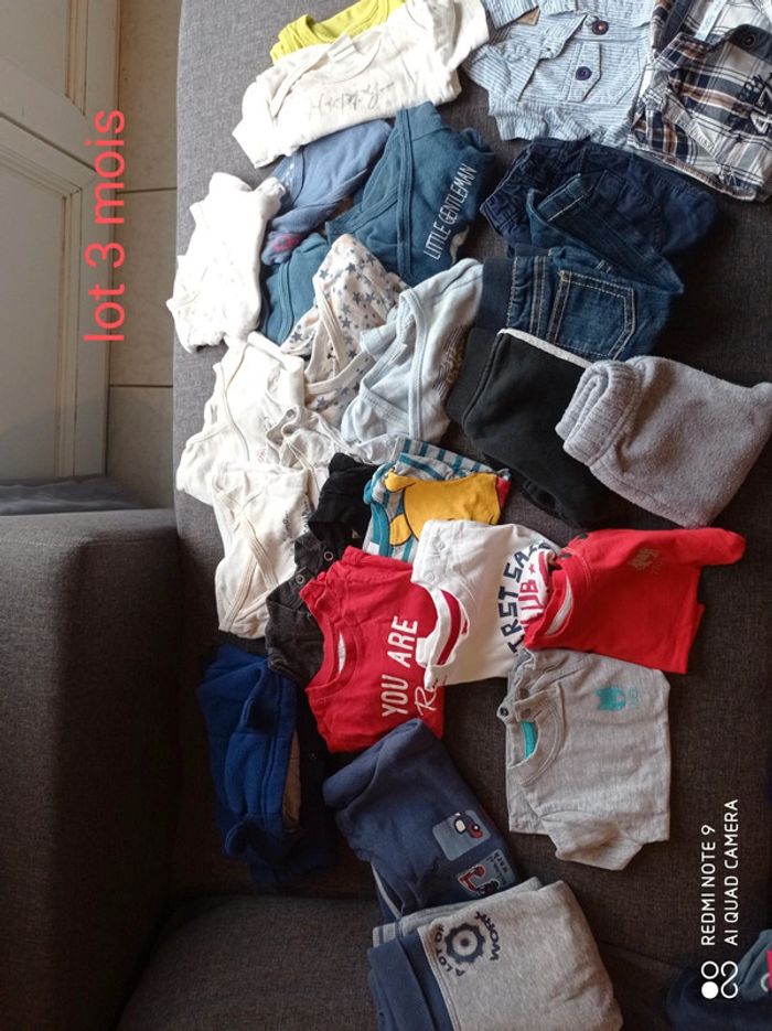 Vend lot 3 mois garçon Composez de: 2 chemises 4 pantalons 3 t-shirts 4 hauts manche longue 9 bodys 2 bodys cours 1 ensemble 5 pijamas 31 morceaux Chaussette de disponible
