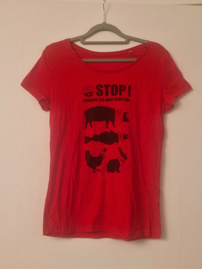 T-shirt rouge, cause animale, M - photo numéro 1
