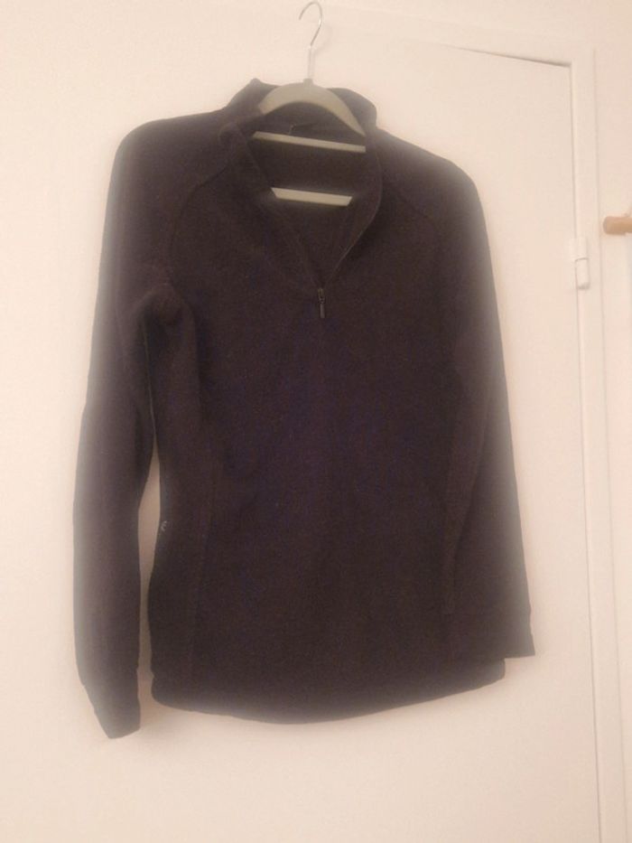 Sweat type polaire noir Fermeture éclair au col et aux poches Très bon état (à part quelques endroits de la fermeture des poches où un peu de peinture est partie)