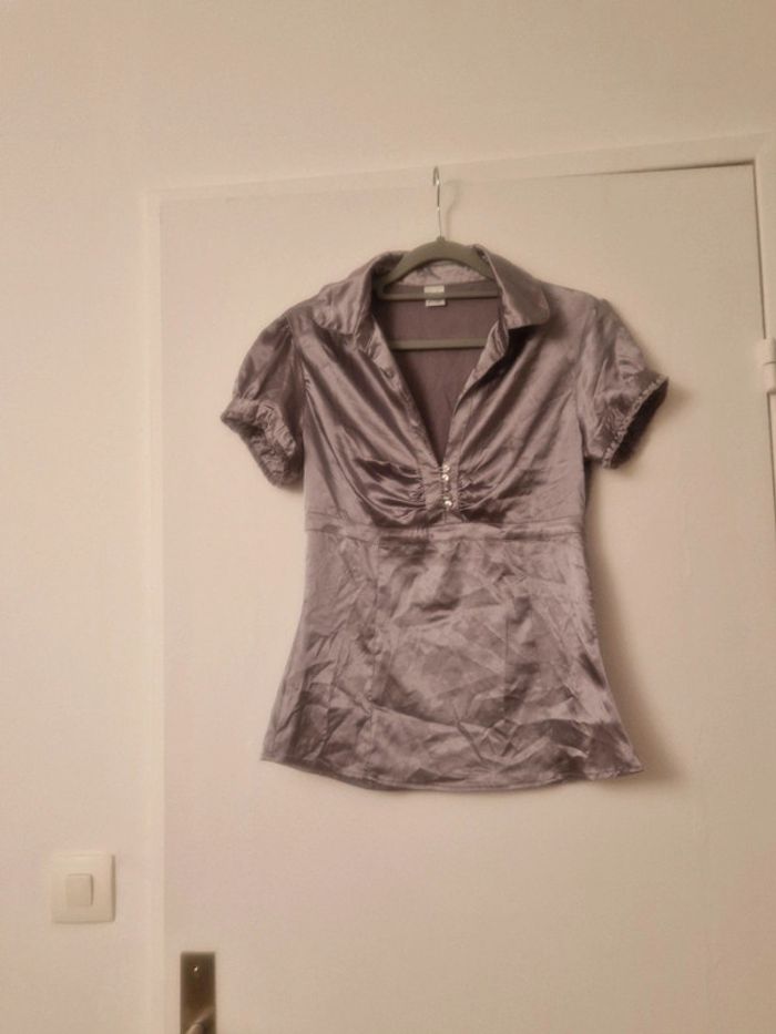 Chemisette satinée grise, Camaïeu, 38 - photo numéro 1
