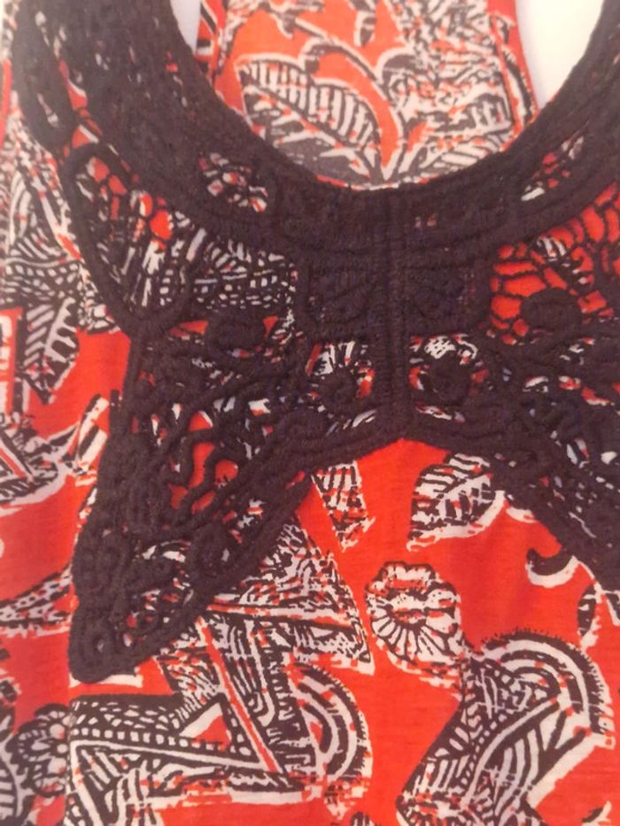 Joli débardeur dos-nageur avec empiècement macramé noir sur le devant. Comme neuf Taille 3 (40-42)