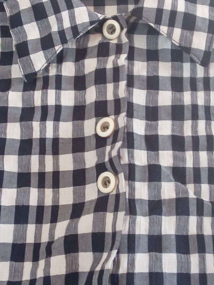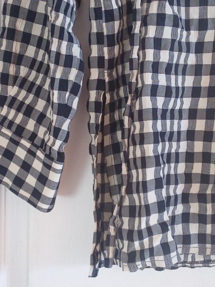 Chemisier Naf Naf à carreaux beige & noir, taille 38. Très bon état (peu porté). Liens à nouer sur le côté.