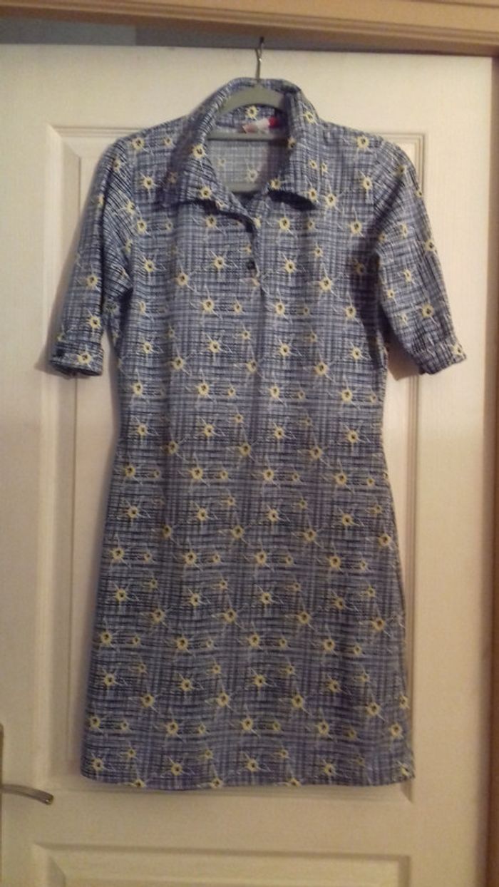 Modèle original, style vintage. Matière assez épaisse et stretch. Manches 3/4. Neuve sans étiquette. Longueur genoux (pour 1m60)