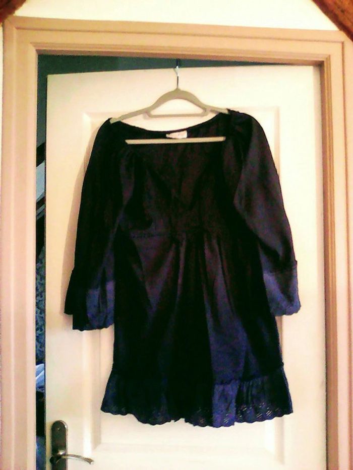 Jolie tunique bleu marine en très bon état dans un esprit bohème chic avec ses volants aux manches (manches 3/4 évasées) et en bas. 100% coton. Taille unique (je faisais du 38/40 quand je la portais).