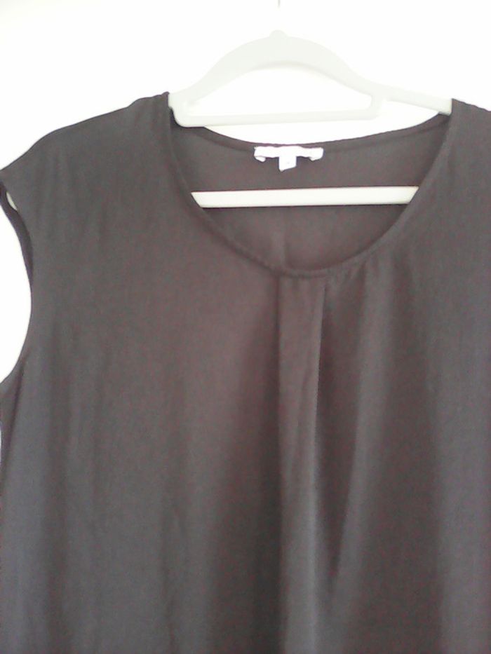 Petite robe noire fluide. Matière très agréable légèrement satinée. Comme neuve. Un basique qui se porte facilement. Longueur genoux (pour 1m60)