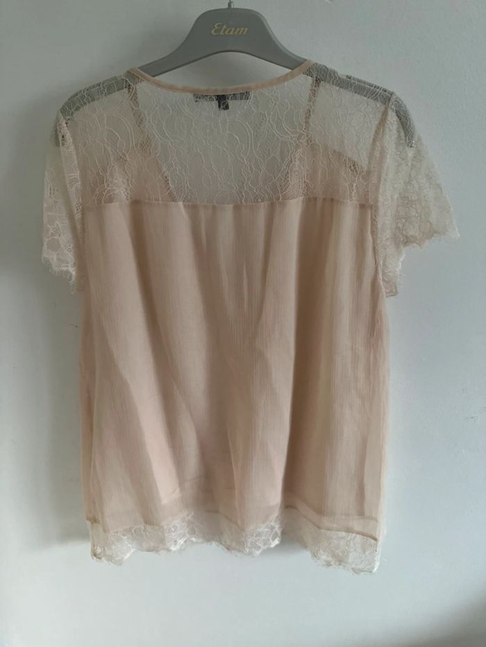 Blouse avec détails dentelle de chez etam Très bon état (petite tache très très légère et très fine qui ne se voit pratiquement pas)