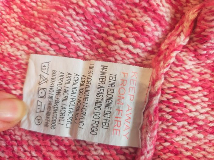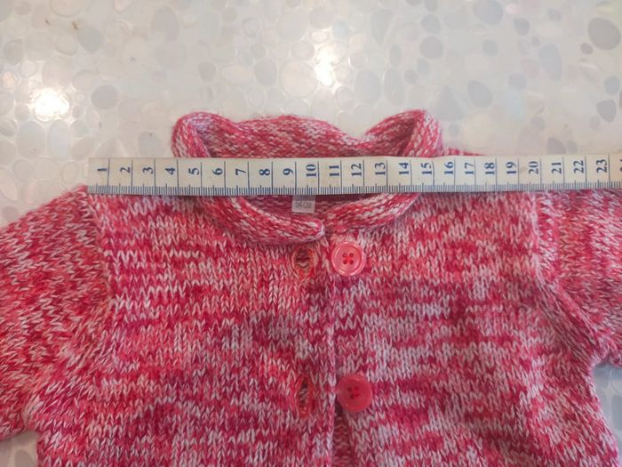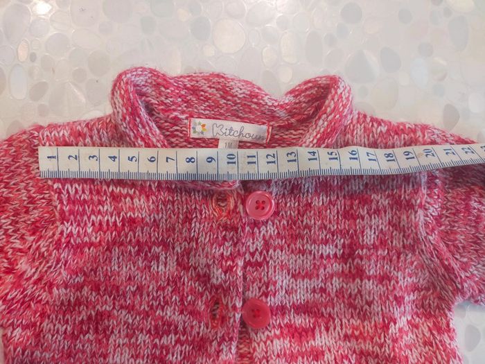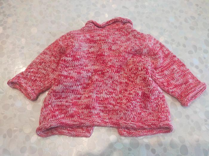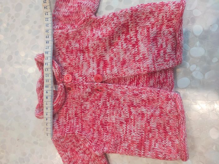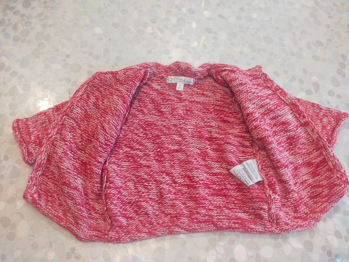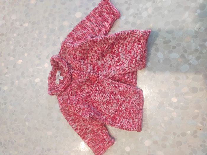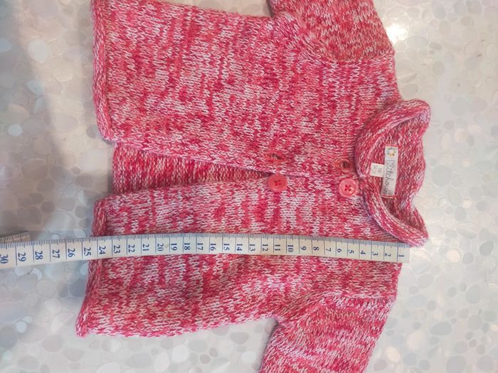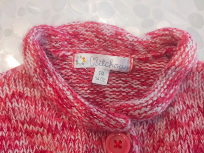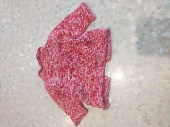 Magnifique gilet pour fille taille 1 mois en laine rose chinée blanc avec 2 boutons très facile à mettre au nourrisson marque original Kitchoun.