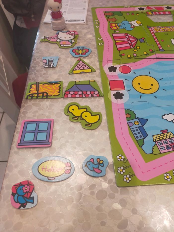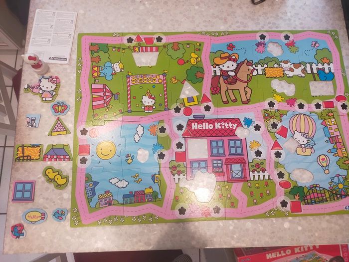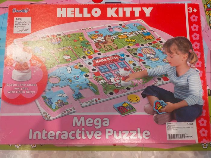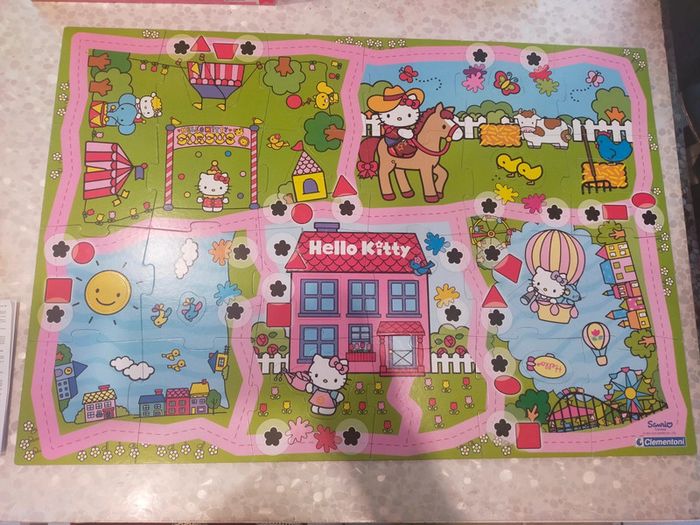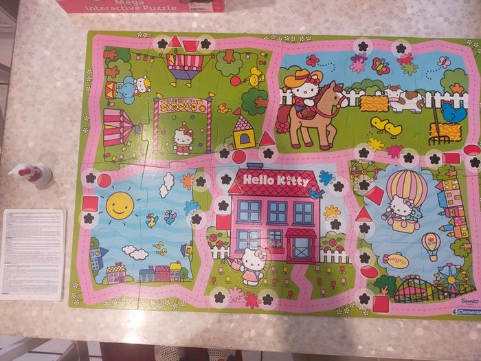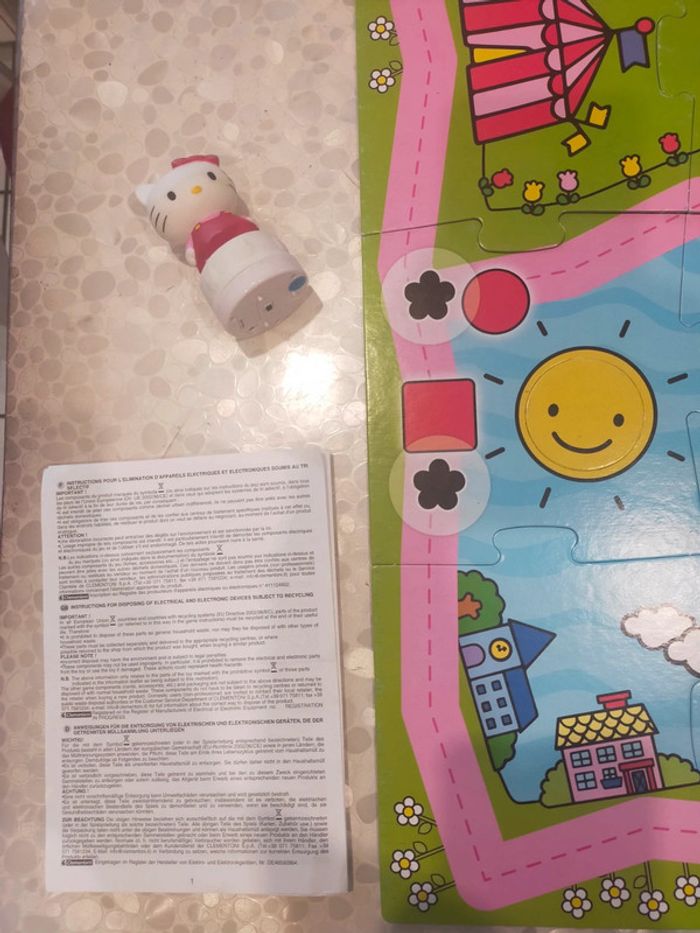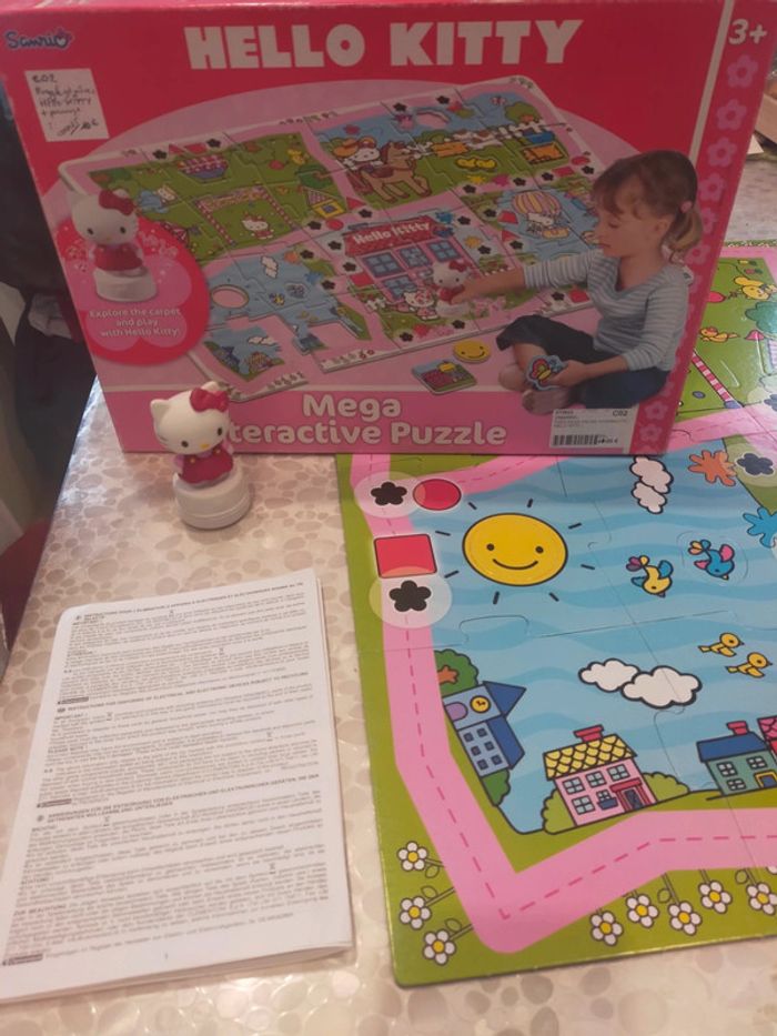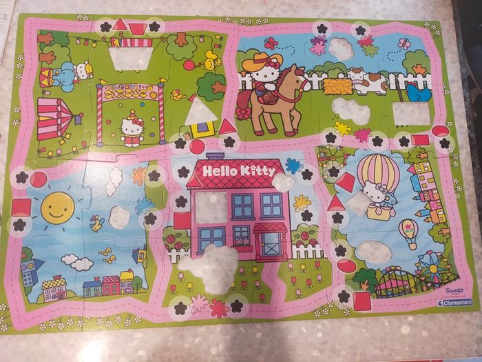 24 grande pièces de puzzle a assembler dans le il y 12 pièces de forme différentes a remettre dans les pièces de puzzle. Également personnage Hello Kitty musicale quand on le place sur les fleurs noires émet un son musicale de validation. Jeux et puzzles complet. Excellente état libre de suite. Envoi possible à vos frais. Réduction si achat en lot . Autres annonces zabou25 .